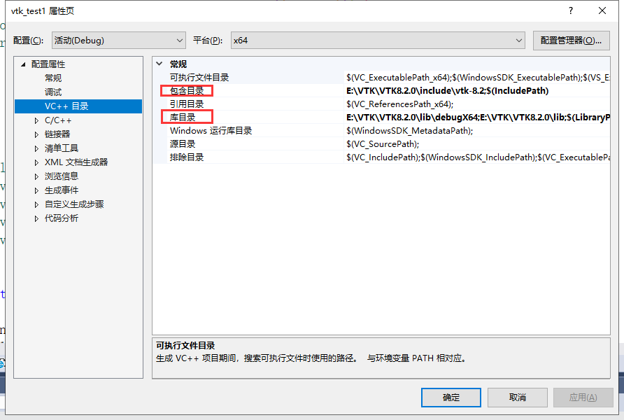 先配置环境变量:E:\VTK\VTK8.2.0\bin\debugX64