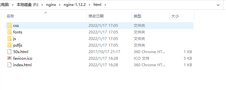 (2)将打包后获取到的 dist 文件夹中的所有文件复制粘贴到 nginx-1.12.2 ---> html 文件夹中,如图: