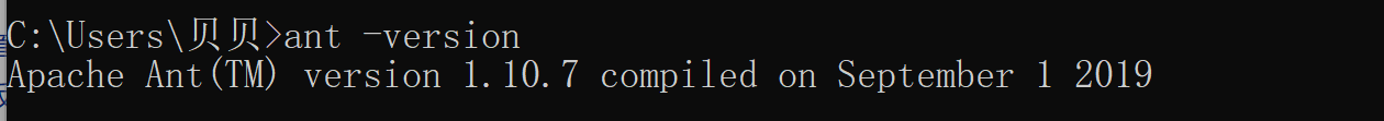 打开 cmd,输入 ant -version,显示如下信息,表示 ant 环境部署成功