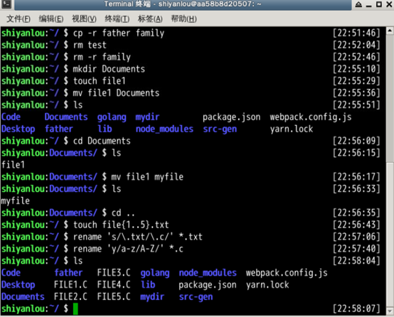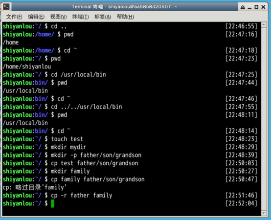 cp xxx /home/shiyanlou //拷贝xxx文件夹到home/shiyanlou目录下