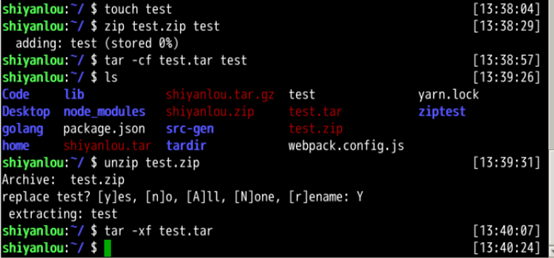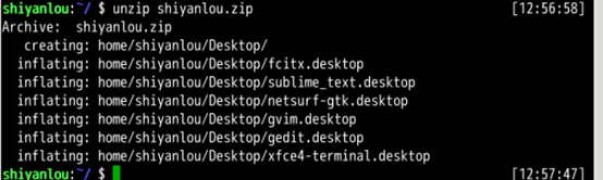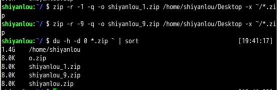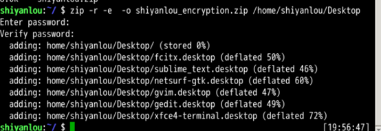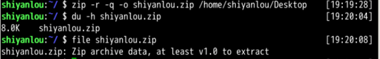 zip *.zip /home/shiyanlou/Desktop //打包/home/shiyanlou/Desktop目录为*.zip