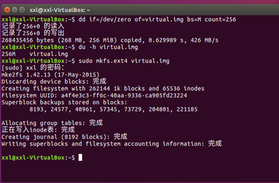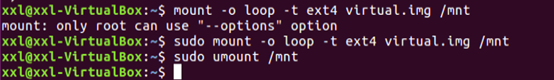 sudo mkfs.ext4 virtual.img //将磁盘镜像格式化为ext4文件系统