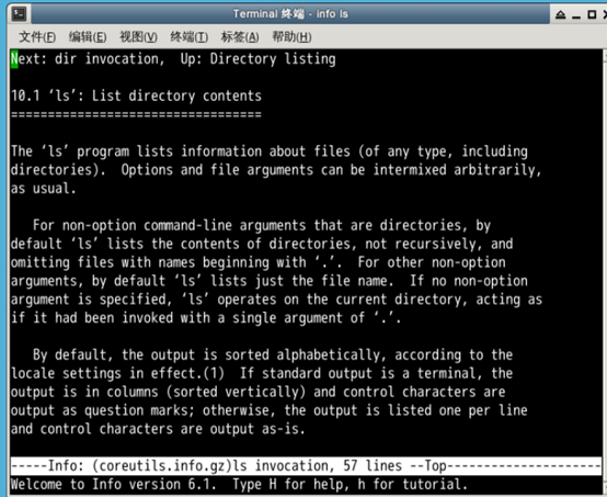 info //得到的信息比 man 还要多,info 来自自由软件基金会的 GNU 项目,是 GNU 的超文本帮助系统,能够更完整的显示出 GNU 信息。