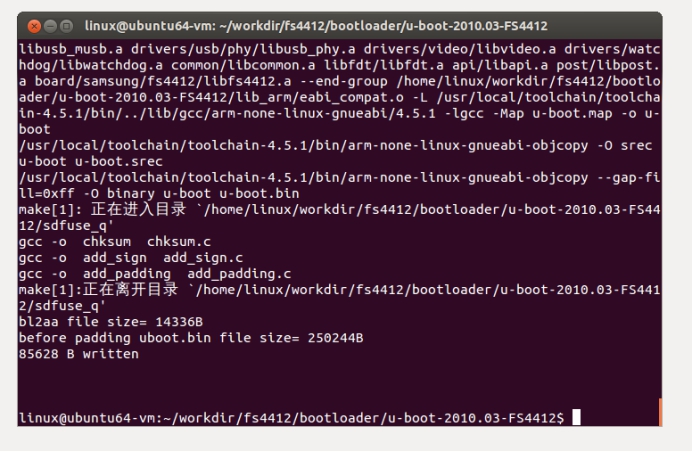 由于以前从未接触过Linux操作系统,首先先熟悉Linux的操作环境。在Linux的操作下,输入代码的时候需要注意是否有空格。例如cp/mnt/hgfs/share/fs4412/u-boot-2010.03-FS4412_V4.tar.xz ./的./其中与前面有空格意为拷贝到当前文件夹。以及sudo的权限问题。