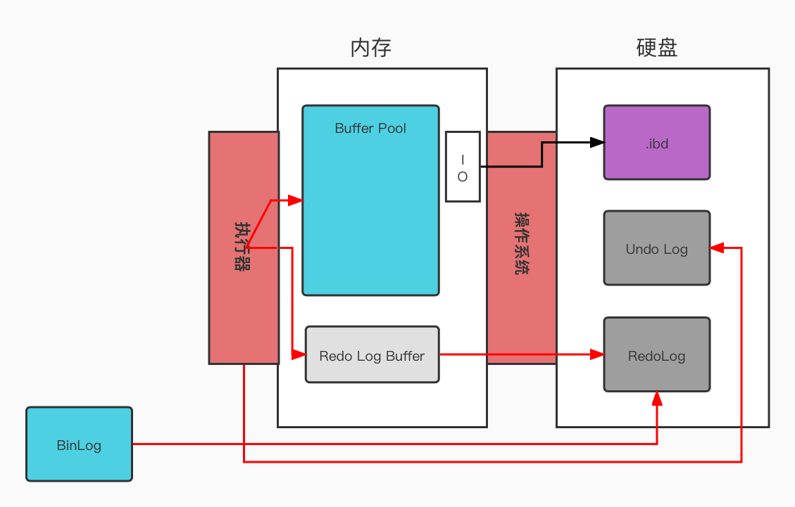到目前为止系统还存在一个明显问题,如果系统意外关闭,那么BufferPool中没有被及时写入磁盘的内容会丢失,为此在内容有设有RedoLogBuffer,为了安全其需要持久化,磁盘中有RedoLog,RedoLogBuffer拥有独立的写入磁盘策略,每次系统重启时,会先从RedoLog中去恢复数据。
