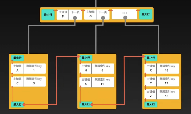 聚簇索引,即为索引也是数据,是有主键key来构建的,即上图中的结构。叶子节点中是包含数据