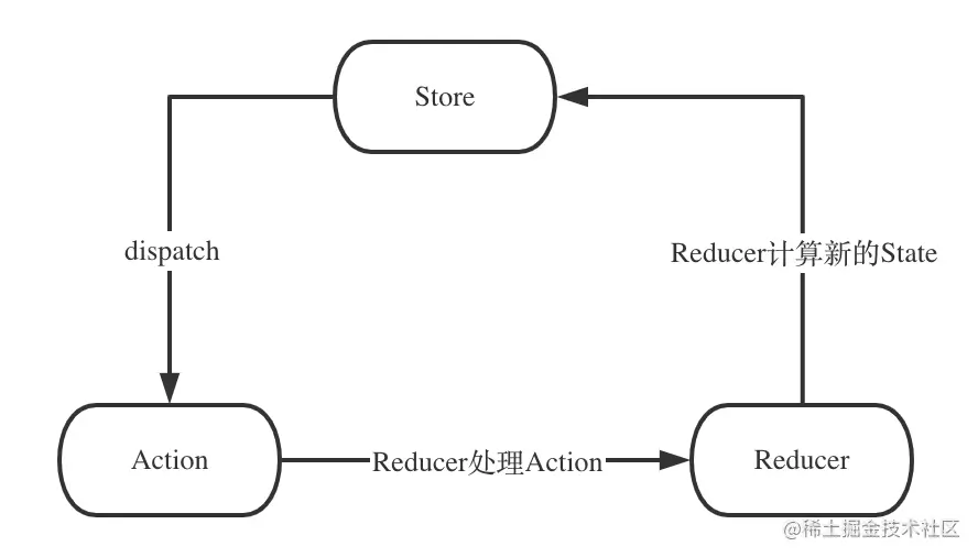 最后我们再来梳理下Redux的核心流程,注意单纯的Redux只是个状态机,是没有View层的哦。
