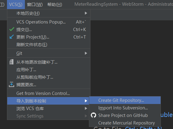 2.创建仓库(此时代码文件会变红色,如果没变红色重启一下webstorm)
