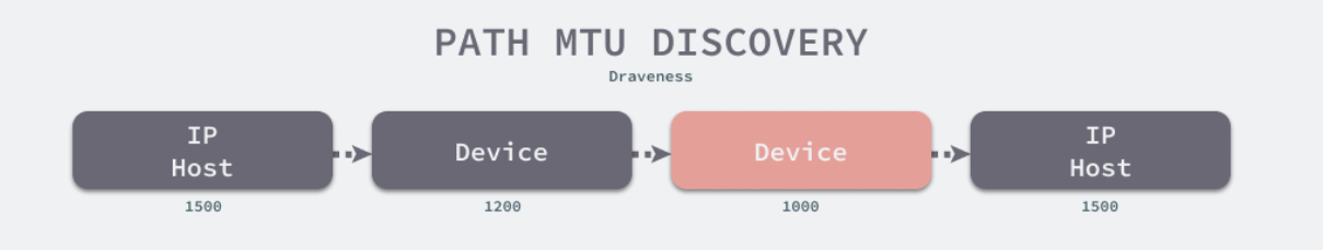 顾名思义,Path MTU就是指传输路径的MTU,无需分片就能穿过某路径的数据包最大长度。在从发送端到接收端的传输路径上,如果网元的MTU设置不一致,则决定该路径可用MTU的,其实是整条路径上的最小MTU值。以Path MTU作为IP包长发送数据,既高效又能避免分片。