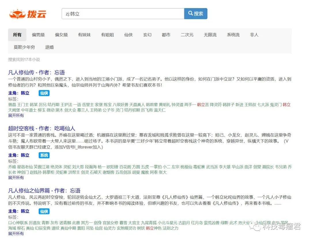 这里推荐的这个“拨云搜索”就是专门为了搜索小说而设置。