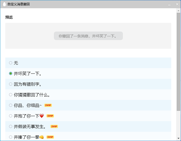 电脑更新版本上,QQ还就对撤回消息进行了个性化,可以有趣化解尴尬。当然,更多个性化还是需要SVIP。