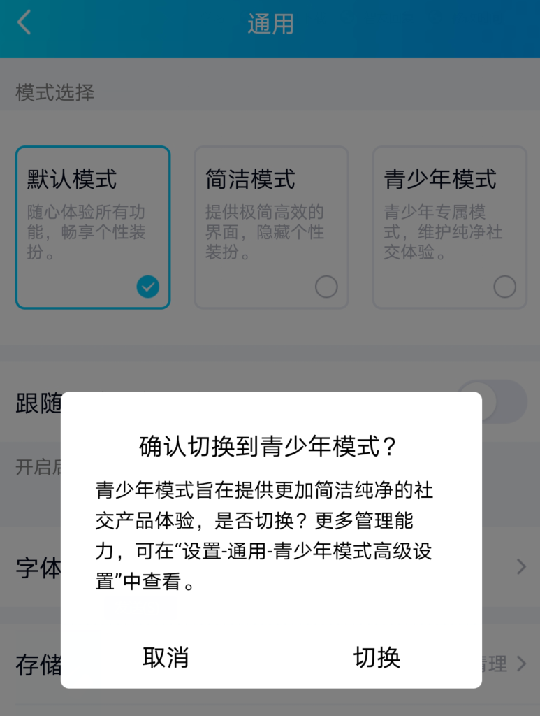 其他功能上,QQ也加入了很多新花样。全新修改 “青少年模式”