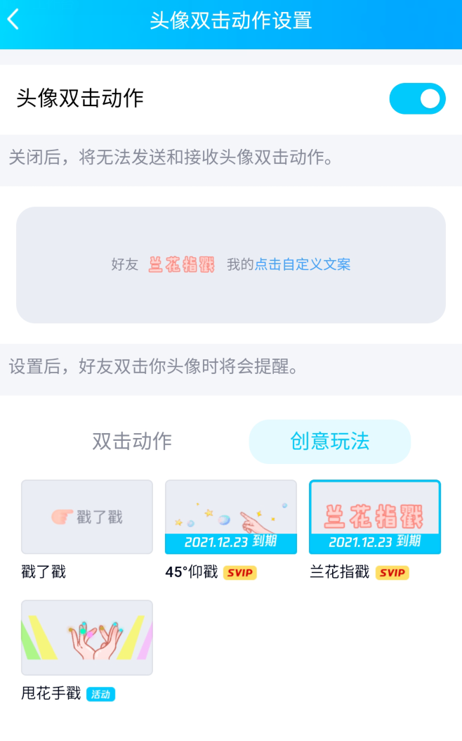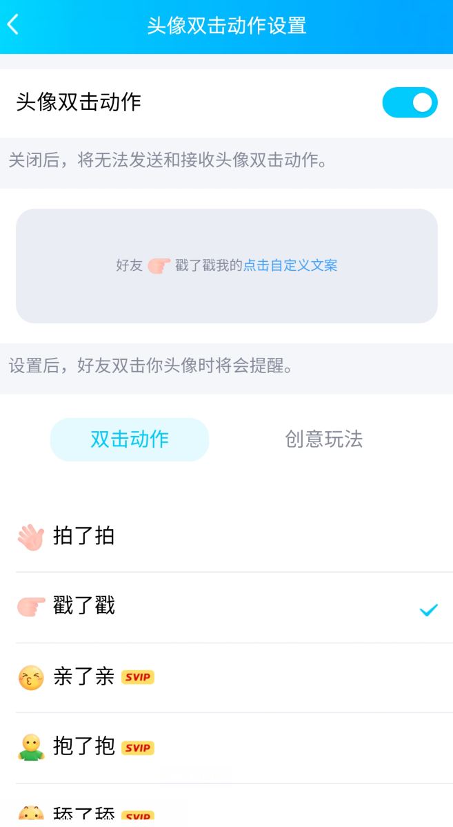 除了设置戳一戳静态提示以外,还能设置动态戳一戳,设置以后,好友戳一戳直接变成动态图片了。