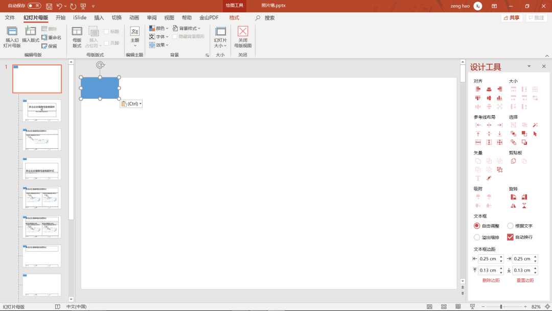 接下来,我们选中其中的一个小格子,点击复制,然后我们打开幻灯片母版(视图栏目下)
