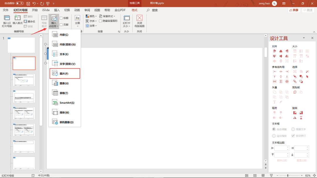 然后点击插入占位符,选择图片,在粘贴好的小格子上框选出一个稍大一点的框