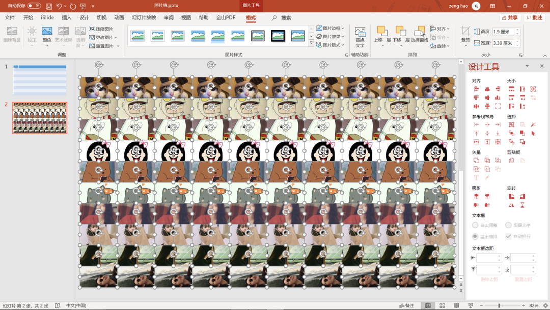 既然是100张照片的照片墙,那首先我们还是在ppt中拖拽出100个同样大小的格子吧。