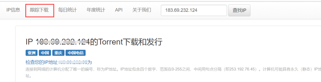 首次打开这个网页,它会自动显示当前 IP 的 BT 下载情况。