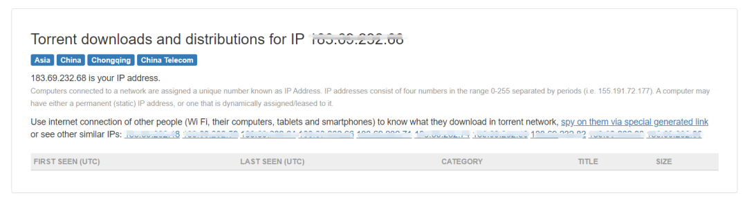 我发现了一个收集分析种子文件的神奇网站,能够通过ip查询自己和别人曾经下载过什么!