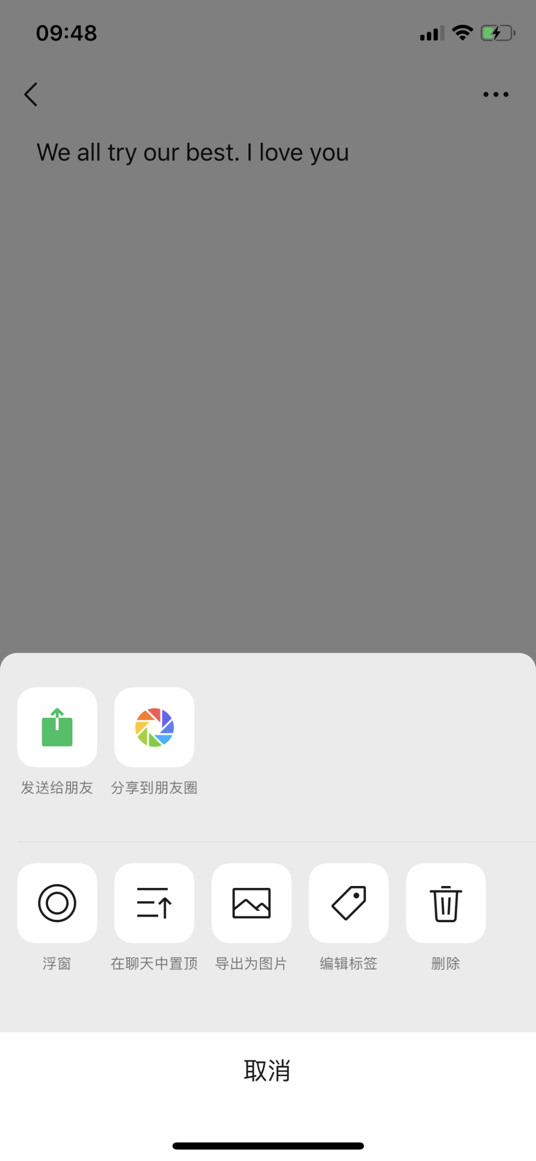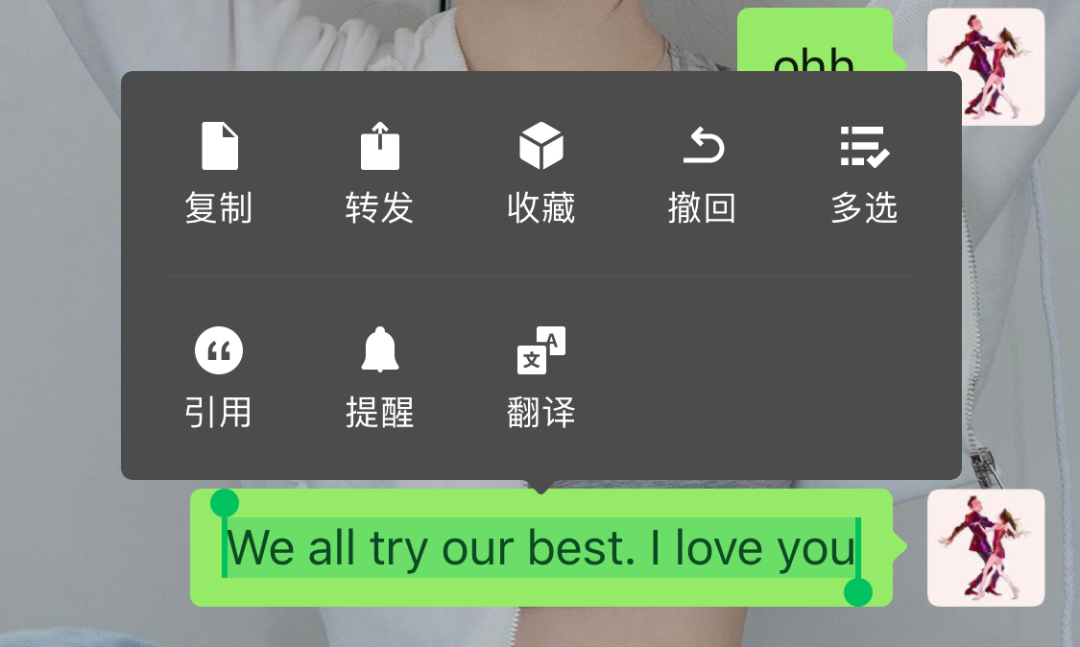 首先,我们在聊天框,发送自己想要设置的文案,我也会在文末分享一些文案给大家。