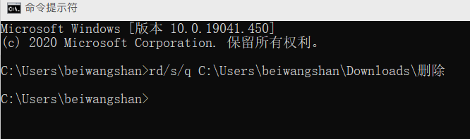 如果想强制删除文件夹中的所有文件,或者强制删除特定的文件,只需要输入命令【rd/s/q 盘符:\文件夹名】即可。