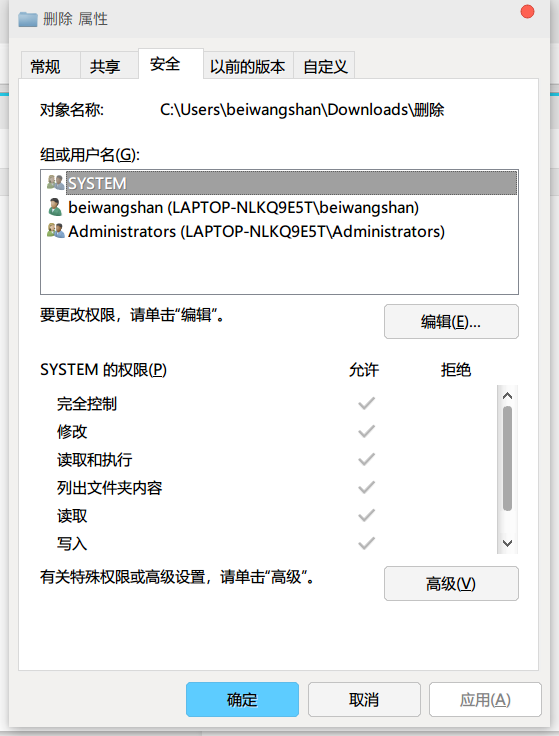 首先我们解决文件路径的问题,在你需要删除的文件夹上右击,选择【属性】,属性下,找到【安全】,对象名称就是路径地址。