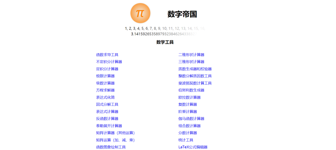 数字帝国是一个功能强大并且非常实用的数学学习工具导航网站,它免费提供了多个实用的在线专业数学工具。