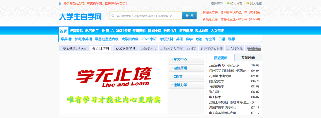大学资源网是一个功能强大的完全免费在线学习网站,提供了丰富并且全面的学习视频教程。