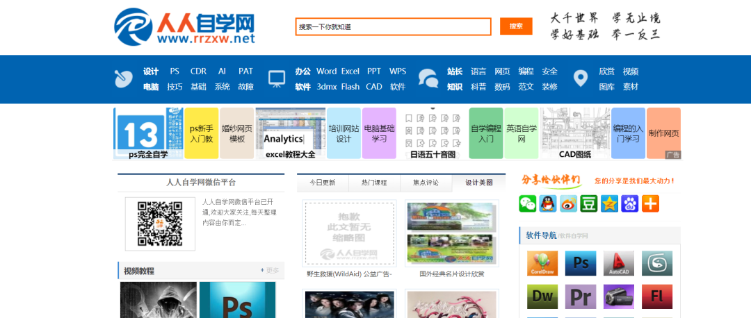 人人自学网是一个完全免费的自学网站,是一个功能非常强大的综合自学网站。