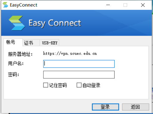 这里提供三种vpn登陆方式,其中账号密码为自己信息门户的对应账号密码