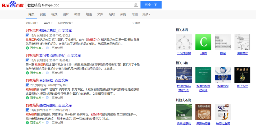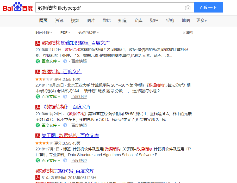 5、限定格式——在关键字后输入filetype:格式(pdf/xls…)