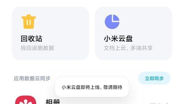 细心的小米用户可能已经发现了,在小米云服务的下方,悄悄的出现了一个小米云盘的标志,简介上写的文档上云,多端共享。