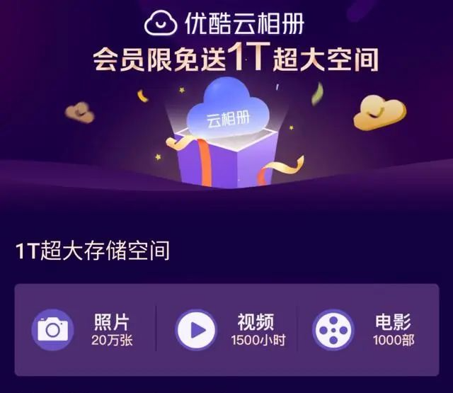 普通用户首次使用优酷云相册可获得 50GB 空间。如果你本身就是优酷会员的话,则默认获得 1T 空间,等于赠送了1T的超大空间,并没有额外的费用。