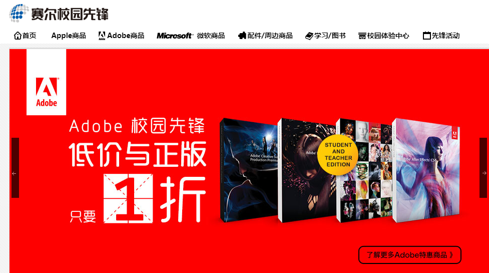 ① 赛尔校园先锋 需要校园网才可以使用 提供 Apple、Microsoft、Adobe 等品牌众多软硬件产品折扣。(校园先锋需要在校园网内登录使用)