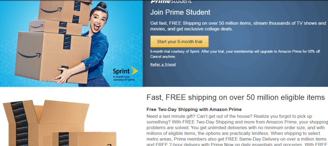 免费半年 Amazon Prime 会员,续费五折