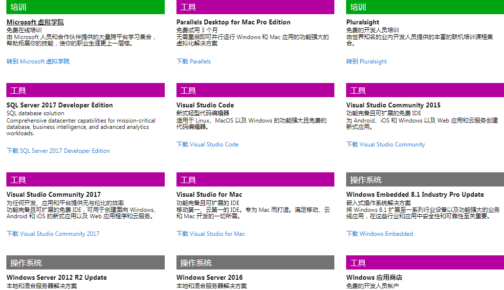 多了什么呢?软件 SQL SERVER、Visual Studio、Windows Server 2012 2016 激活码 以及 Windows 应用商店开发人员账号等。如果学校有额外订阅,则可以下载到其他软件,具体可在