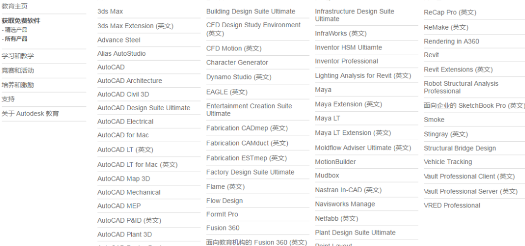 旗下 AutoCAD、 3ds Max、 Maya 等一系列软件统统免费,只需要 .edu 教育邮箱注册即可。