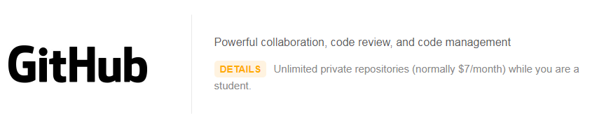 ④ GitHub 提供 GitHub 无限私人知识库两年使用期。用教育邮箱注册,并在 Get Student Pack 申请通过后自动升级生效。