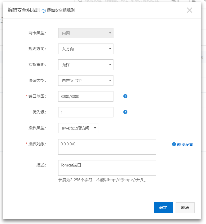 6. 在阿里云ECS服务器中添加安全组,放行8080端口: