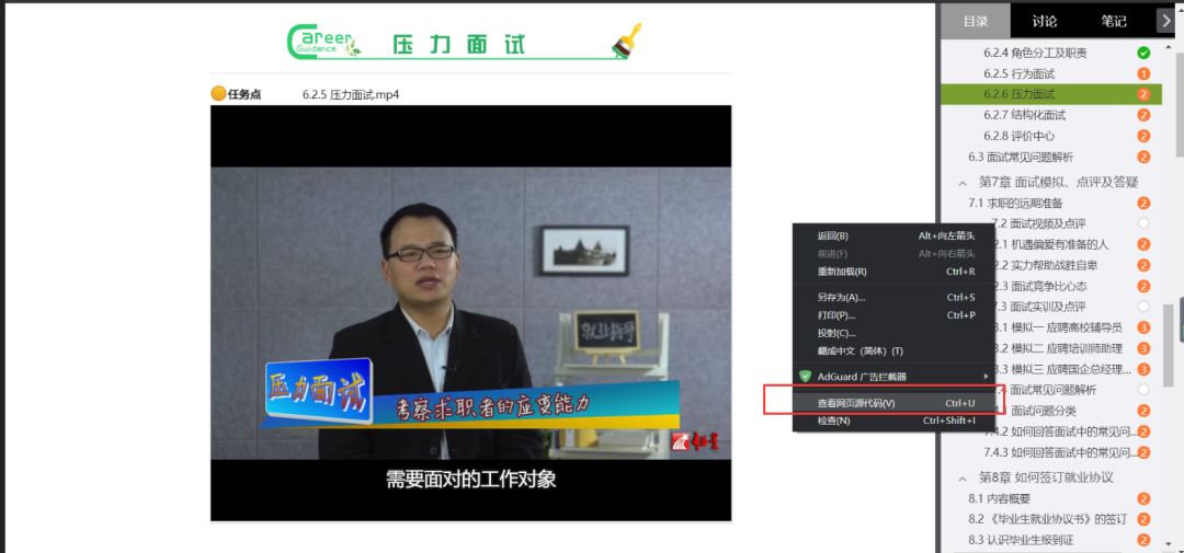 进入网课播放界面,在浏览器空白处右键->查看网页源代码(或者直接按 ctrl+U )。