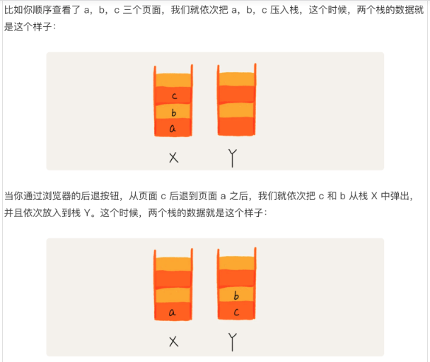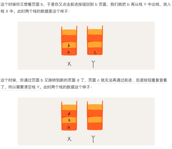 - 点击前进按钮时,把页面从Y栈出栈,压入X栈