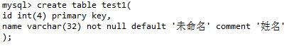 create table 表名(字段名1 类型 约束条件,字段名2 类型 约束条件);