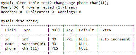 alter table 表名 change 旧字段名 新字段名 (类型);