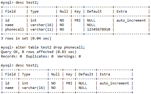 not null 非空 default 默认值 comment 注释 auto_increment 自增