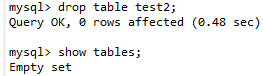 empty set表示没有内容,这里表示数据库里一张表都没有。