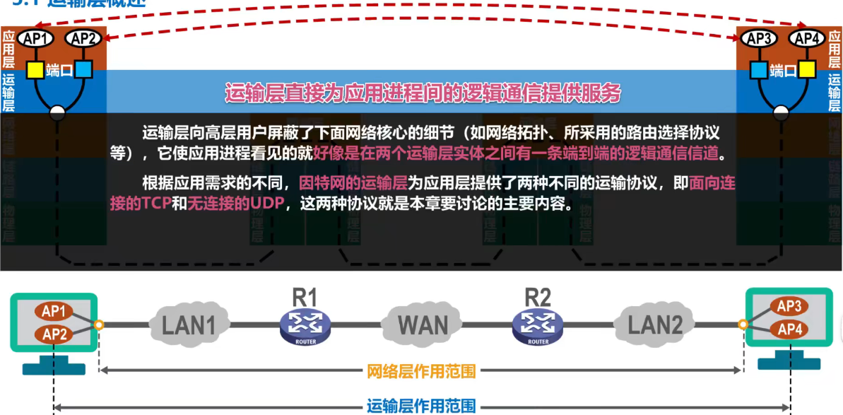 网络层的作用范围是主机到主机,而运输层的作用范围是进程到进程(端到端)。