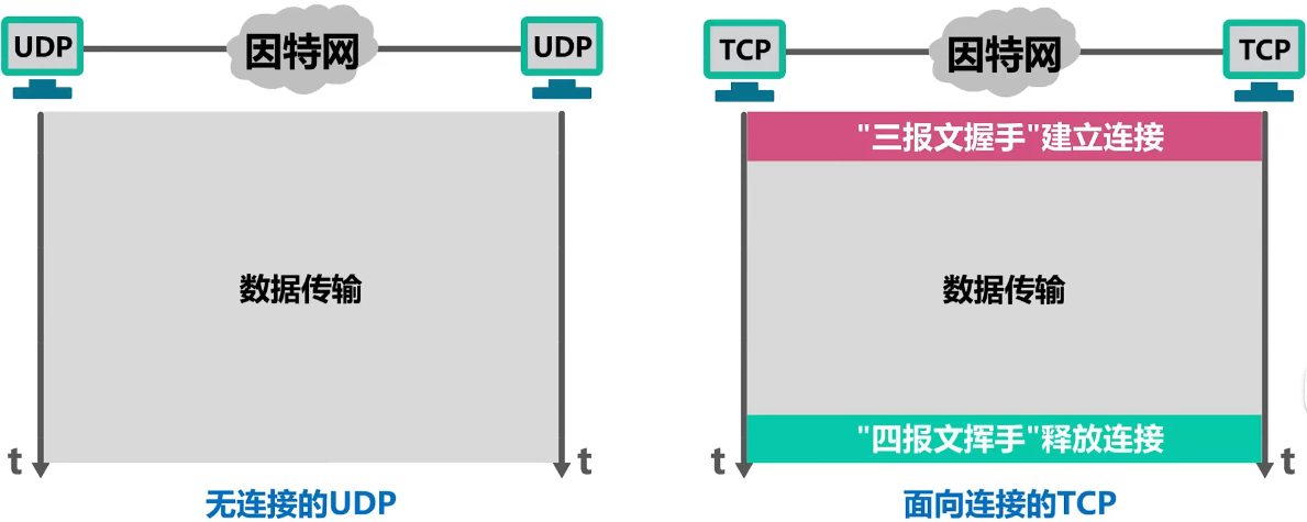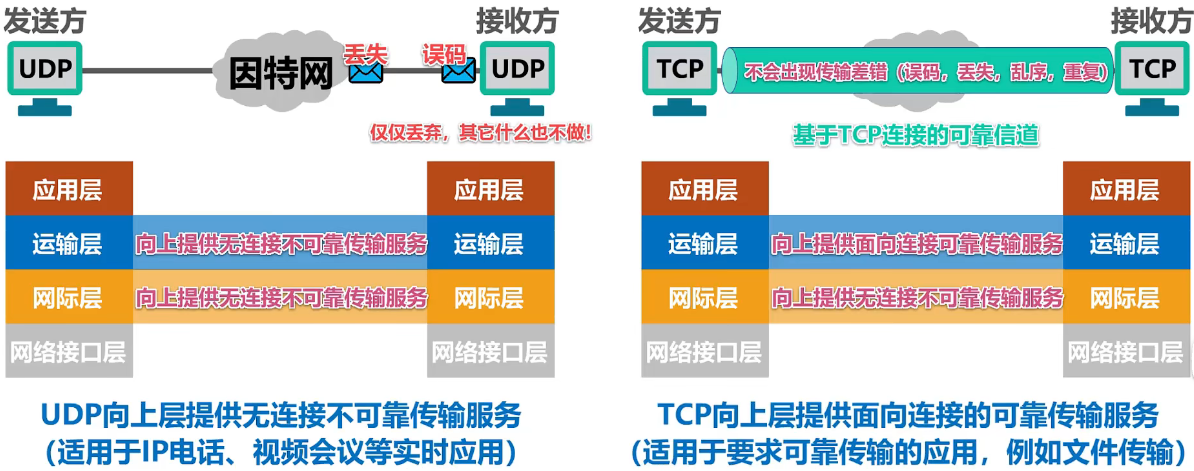 UDP提供的是无连接不可靠的服务,TCP提供面向连接可靠的服务