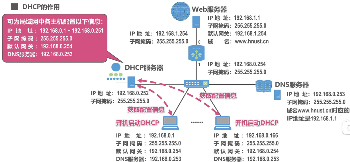 有了DHCP服务器,就可以自动完成主机的各项配置,省去了手动一个个配置。