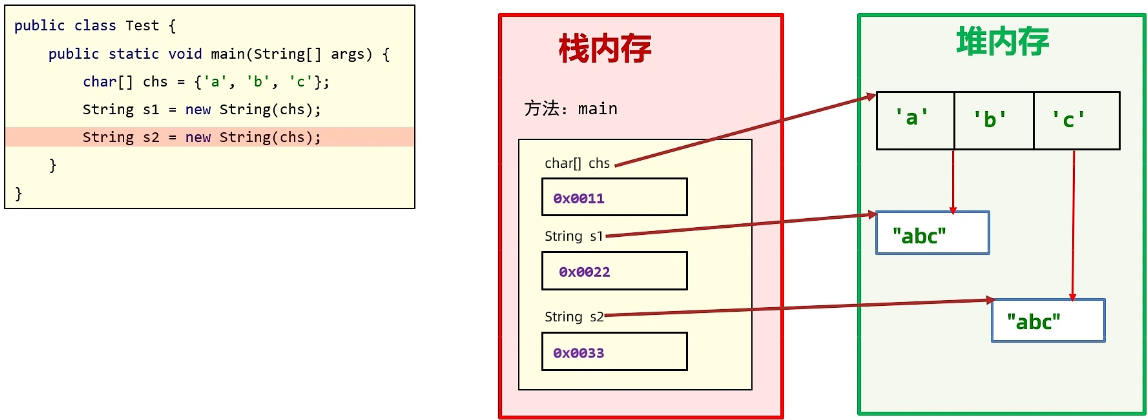 //2.2 根据传入的字符串创建字符串对象(不推荐)