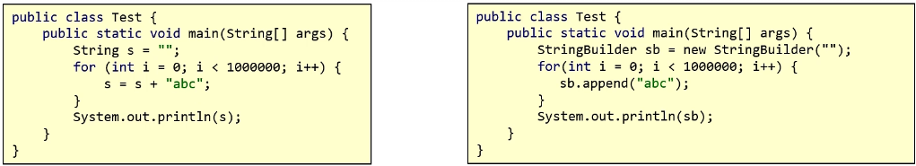 如果按一般方法来拼接字符串一百万次,那么速度会很慢,每次拼接后在内存层面都会产生一个新的字符串
