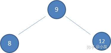 假设初始的二叉查找树只有三个结点,根结点值为9,左孩子值为8,右孩子值为12: